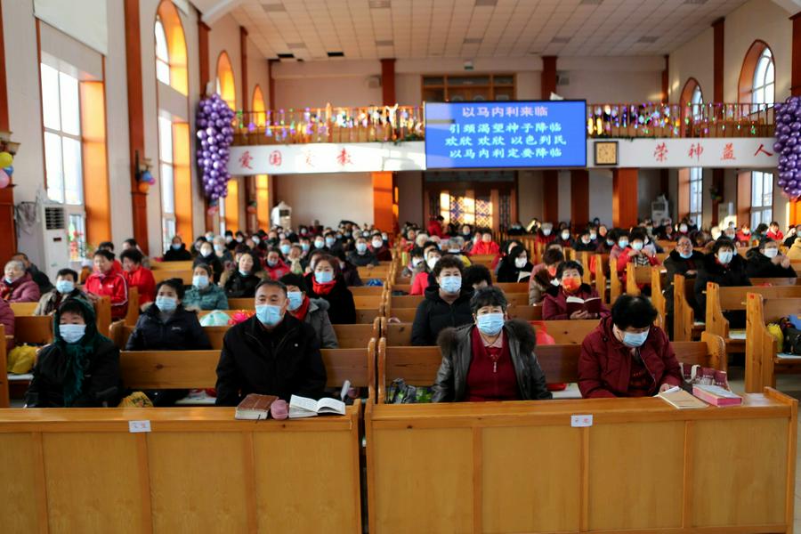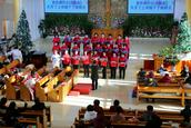 今天的圣诞节感恩庆祝活动,是自疫情一年多以来教会最大的一次庆祝聚会。父老乡亲们有的被教堂的大客车从家里接到教堂、有的相约喜乐的早早来到教堂,按照防疫要求接受测温、登记等流程;在主堂入口,大家有序的领取圣诞节礼物、领取事先打印好的圣经金句,然后按照教会发的座位号码对号入座,跟随诗班赞美歌唱。