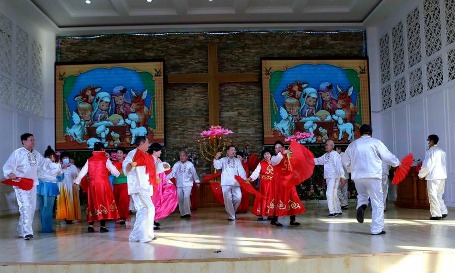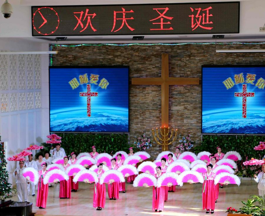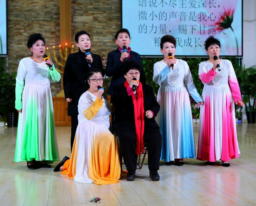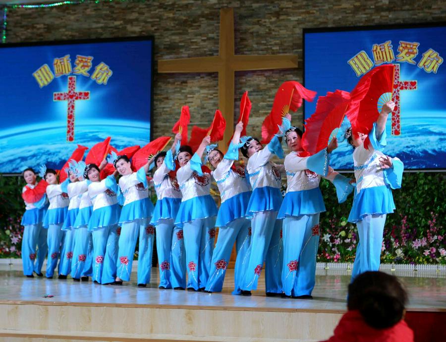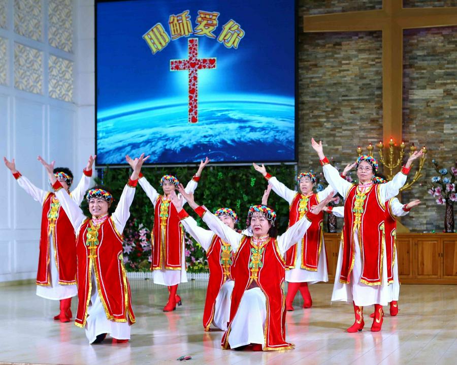 在即将结束的时候,刘雪光牧师登上圣台,和大家一起高歌赞美,教会参加节目演出的会众和现场的观众,大家一起东北秧歌扭起来,有的在台上、有的在台下,台上台下一起欢哥赞美神,达到了高潮,一个个节目,饱含爱神的真情、一首首赞美充满感恩的激情,无论何时何地、遇到何种情况,都是感恩、都是赞美,因着神与我们同在!