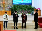 在赞美的中间,邵红霞牧师呼召第一次来到教堂的新人,有三位姊妹跟随牧师决志祷告,成为新的家人,感谢主!