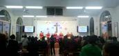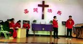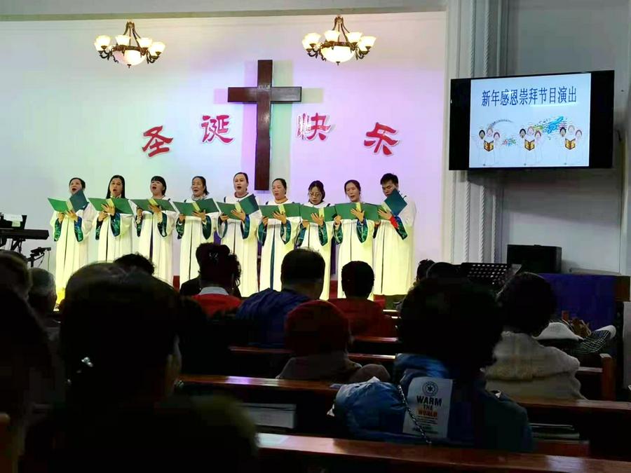 晚上的新年感恩崇拜赞美由关荣雷教士和陈小凤姊妹主持。新年演出在“番薯赞美队”的音乐敬拜《走进新的一年》《新的异象、新的方向》《同路人》拉开了序幕。紧接着赞美诗班、舞蹈队、青年团契、夫妻合唱团团契等班组和弟兄姊妹把精心排练的合唱《一年的路程》、舞蹈《新年里送祝福》、小品《糊涂的基督徒》、木偶圣剧《狮子坑》等十个节目献给三一的神,以表达感恩之情。
