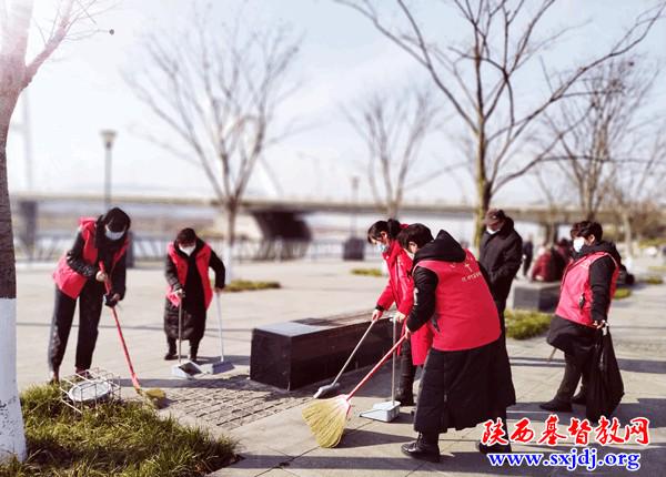 1月12日,因社区防疫工作繁忙,市基督教会26位爱心义工志愿者报名参加到防疫志愿者行列,支持社区防疫。史明兰教师带领服务部同工为支持抗疫工作,清扫街道,打扫河堤卫生。