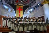 接下来,是诗班献唱。在白雪姊妹带领下,在钢琴音乐伴奏下,诗班弟兄姊妹怀着对主深厚的爱,献唱了《爱的奇迹》这首赞美诗歌。“那日从高山上坠落谷底,从此生命不再有意义。闭上眼睛和你一起呼吸,轻轻呼唤你的名字。一双手从泥土中把我捧起,再也没有离开深爱的你。恩典彩云般地围绕在身边,每一天都经历幸福传奇。有一种爱叫宁愿舍己,有一种爱叫只为了你。有一种爱叫生死同行,有一种爱叫不离不弃。主爱真奇妙,主啊谢谢你。主你让我复活让我美。心儿飞向你赞美献给你,用生命书写爱的奇迹!”