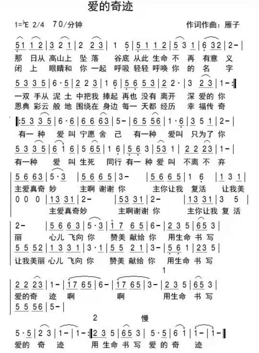 旋律奔放充满爱,歌声嘹亮渴慕爱;各各他山上见证,主流血显示大爱;穿越岁月爱还在,救赎我们离苦海;主是新郎我是妇,嫁给我主爱永在;是主给了我生命,是主让我不悲哀;各山依旧爱还在,如海之深把我爱。恩典彩云围绕我,主爱永远同我在;紧跟我主奔天路,生命书写永恒爱!