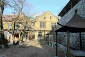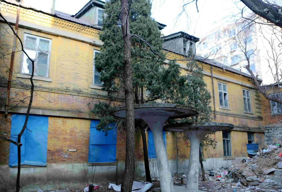 来到这里对着马路,迎面是一栋二层淡黄色小楼依然可以看到绿底白字的“丹东市第三医院”的牌匾和楼顶的五星红旗,是否还继续对外开诊,不清楚,因为三院已经搬迁到新地址了。医院大门还开着,但是没有人走动、来往。我们看到,院内原有的医院主楼虽然经历了一百多年,有些破损、陈旧,也有的改为现代的塑钢窗户等,颇有一点沧桑感,但整体基调没有改变、“骨架”没有改变,“风韵犹存”,给人的印象是不失北欧的低调奢华的简约风格,简约而不简单,充分展现了丹麦建筑在以人为本的建筑理念及艺术与功能的完美结合欧式风格。
