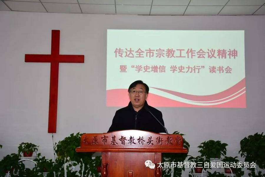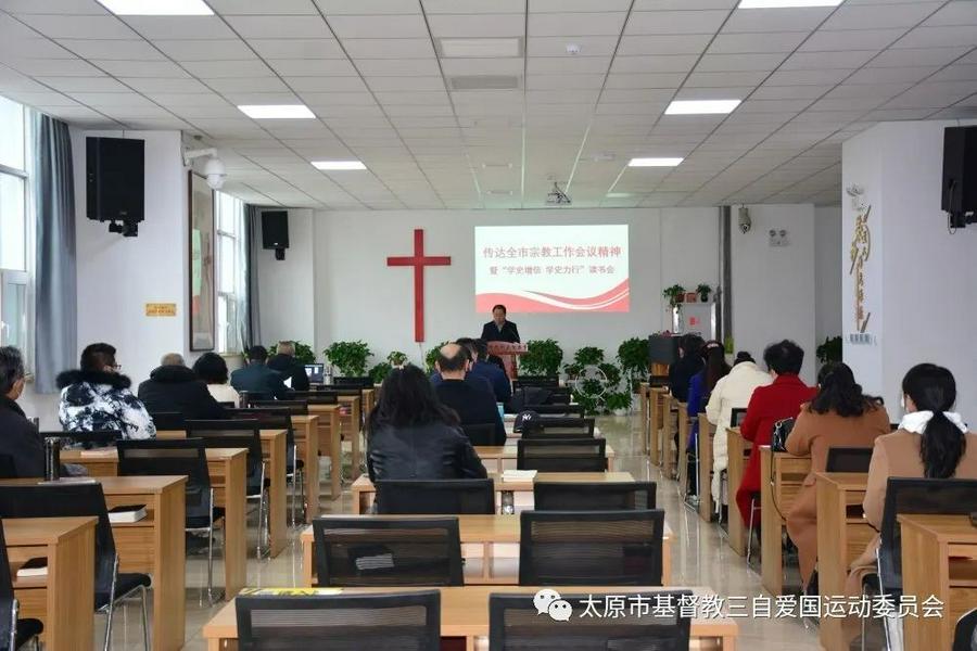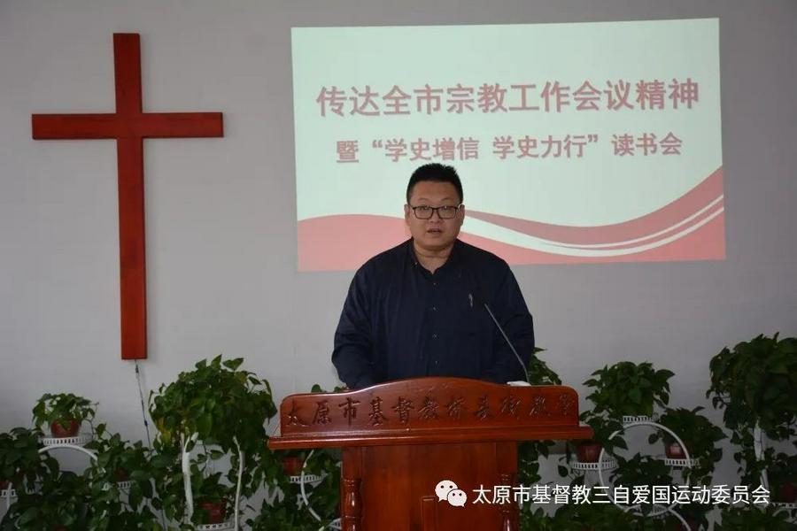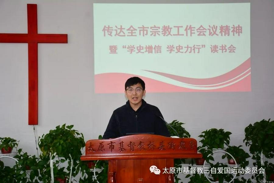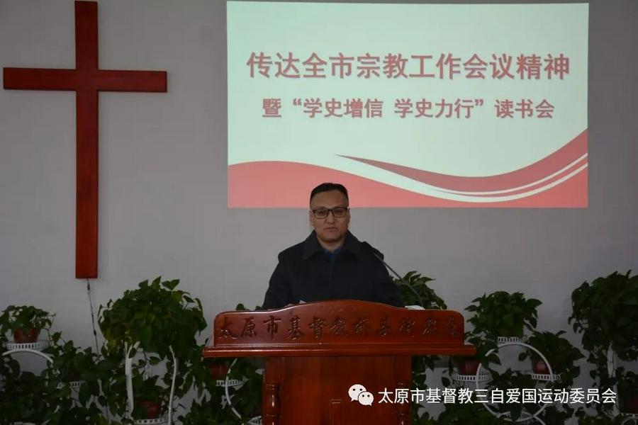 为深入学习贯彻习近平总书记关于宗教工作的重要论述,落实国家和省、市宗教工作会议精神,持续深化“四史”学习,响应基督教全国两会和山西省基督教两会相关工作的要求,不断增进对伟大祖国、中华民族、中华文化、中国共产党和中国特色社会主义的认同,3月18日,山西省太原市基督教两会在桥头街教堂组织全体常委、教牧同工,传达全市宗教工作会议精神暨举办“学史增信 学史力行”读书会活动,市基督教三自爱国运动委员会秘书长罗海良牧师主持会议。