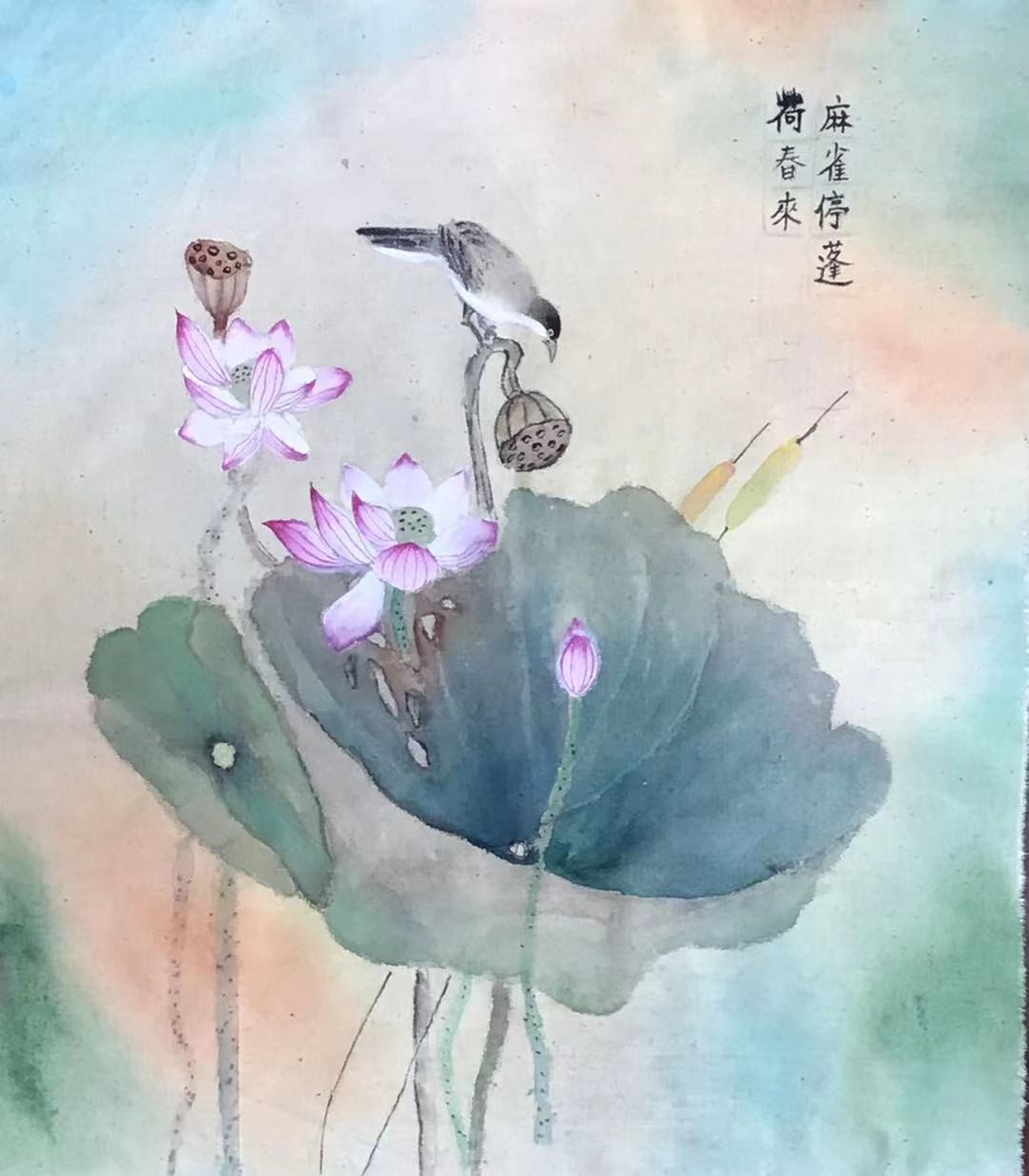 最近北京在高温18度后却一场大雪,我画室窗外四线道马路已有十分钟没有人车来往了。疫情让人世冷清、冷酷也冷静。疫情严峻已全面停课,我爱上个月我学生刘佳怡这幅画,主题就是小鸟对荷花最是那一低头的温柔……不是画多好,而是我亲眼见12岁孩子努力想画小鸟小禽的生命活力。与您分享一个小学生那股劲头吧,我们一齐细心精心“雕琢”生命的用心耐心,岂可输给一个12岁小女孩?