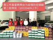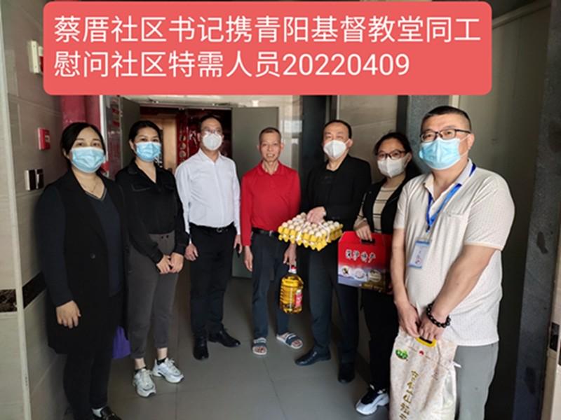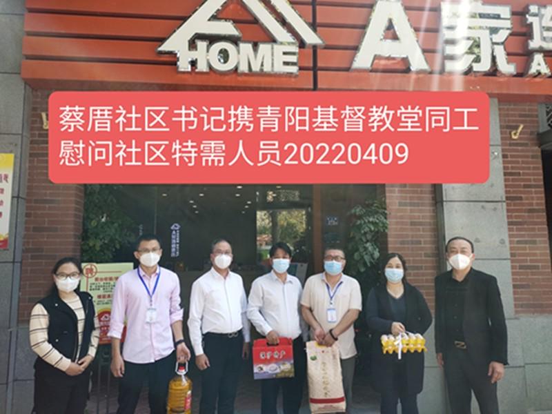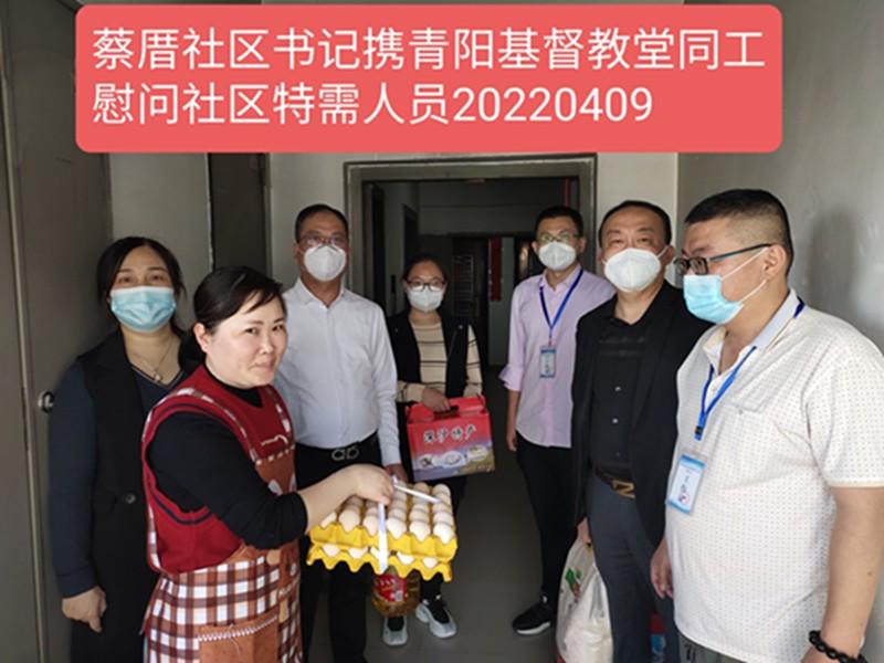 青阳基督教堂本着“奉献爱心、关怀社会、服务大众”的精神,近一个月来,捐献给教堂周边的社区:赤西社区5000;蔡厝社区5000;梅岭街道卫生院5000元,慰问6家(残疾人、重病患者、孤寡老人、外地工等)特需人员,捐赠价值1380元的(20斤大米、10斤金龙鱼油、鸡蛋及晋江深沪特产等)生活物资。为防疫之战尽绵薄之力,通过实际行动祈祷国泰民安,担当起应有的社会责任,全力以赴参与到这场疫情防控战。