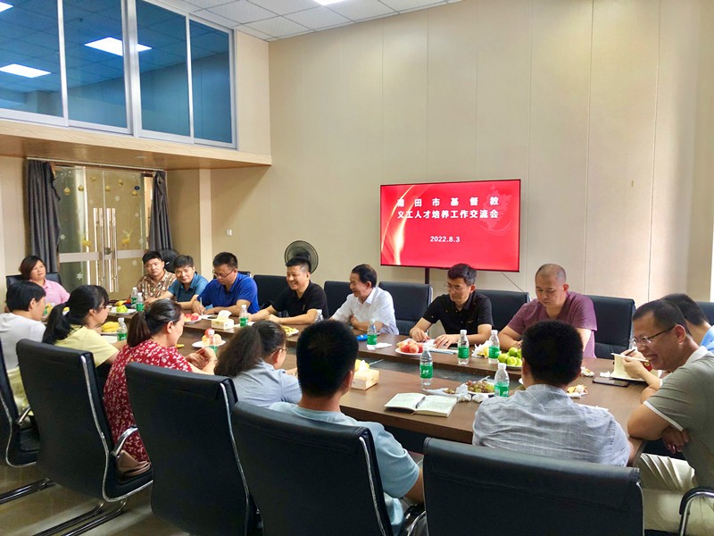 8月3日,福建省莆田市基督教两会在培训中心召开义工人才培养交流会。来自市两会培训中心成员、神学教育委员会成员、青妇委员会成员共25人参加,本次会议由市基督教协会副会长郑俊杰牧师主持,会议在市基督教三自爱国运动委员会副秘书长、秀屿区基督教三自爱国运动委员会副主席林超群牧师祷告中拉开序幕。