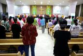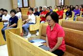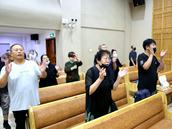 此次敬拜赞美会从这个礼拜一(8月22日)开始,每天晚上6点至8点。裴莲淑牧师介绍道,每个晚上的赞美,由教会的不同的六个聚会点、团契轮流登上圣台与台下的会众一起共同赞美。