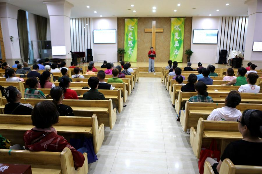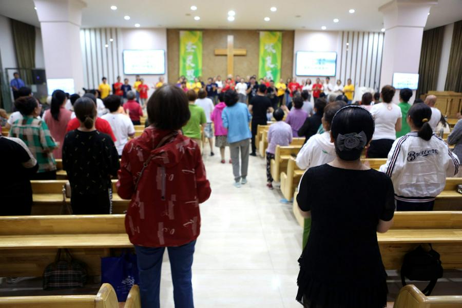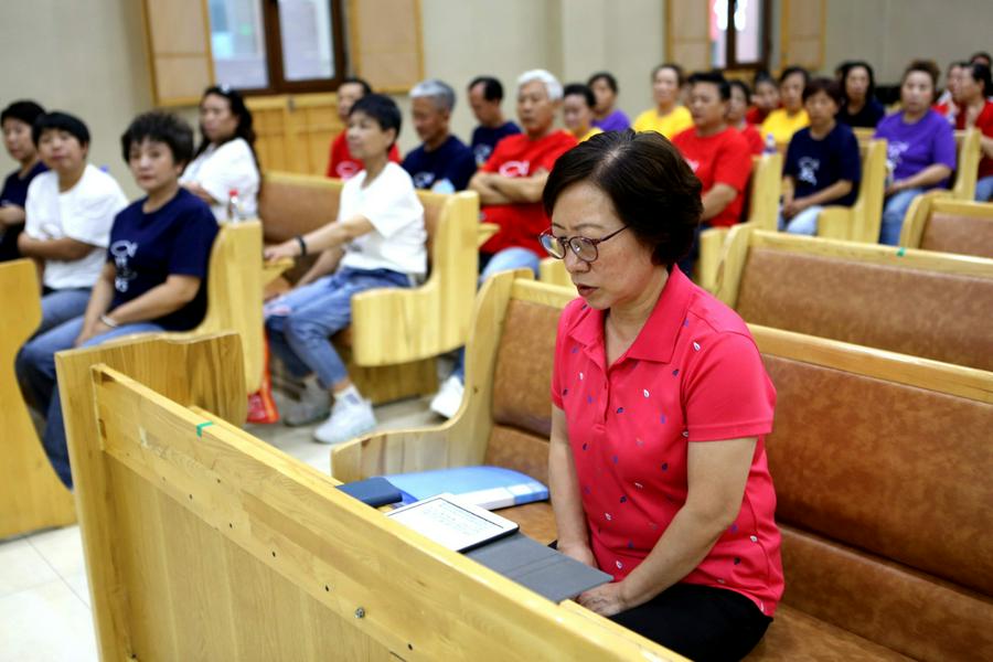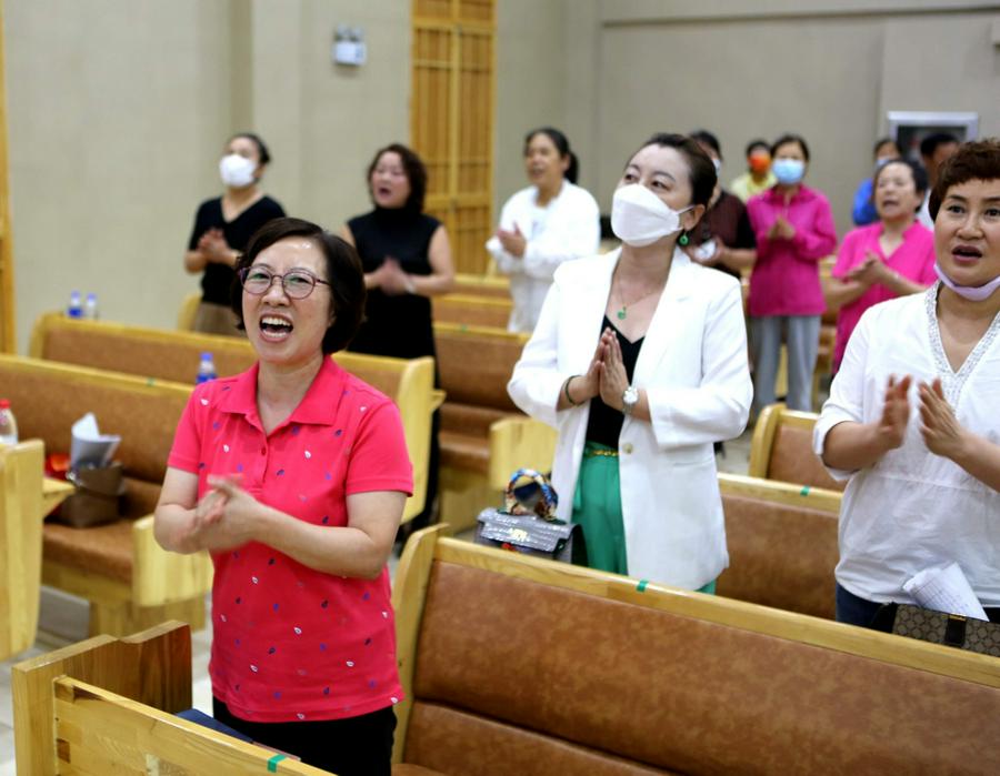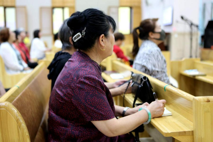 在主堂,我看到了与信徒一起参加赞美的鞍山市基督教协会副会长、永乐教会裴莲淑牧师,她介绍,之前教会每年都要举办连续6天的敬拜赞美会,但是由于疫情而停止了。今年在防疫进入常态化、平稳和严格遵守疫情防疫要求的情况下,再次开始恢复了赞美会。