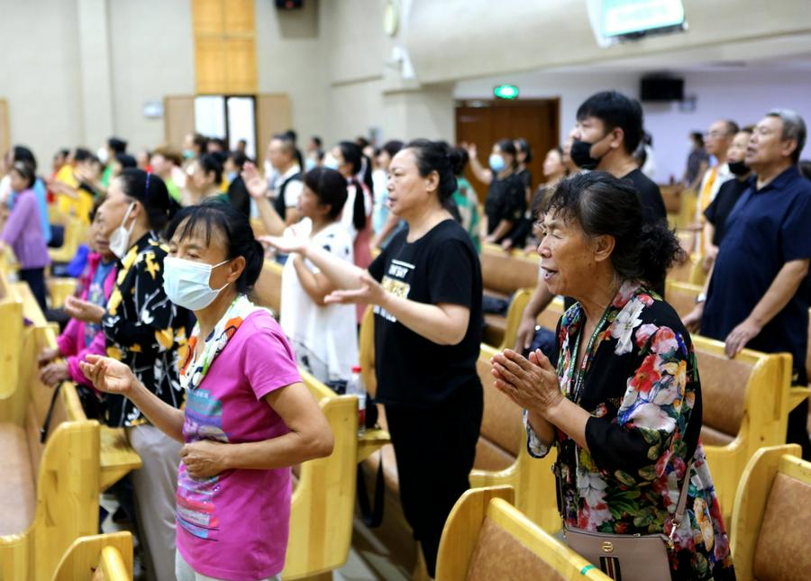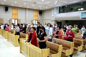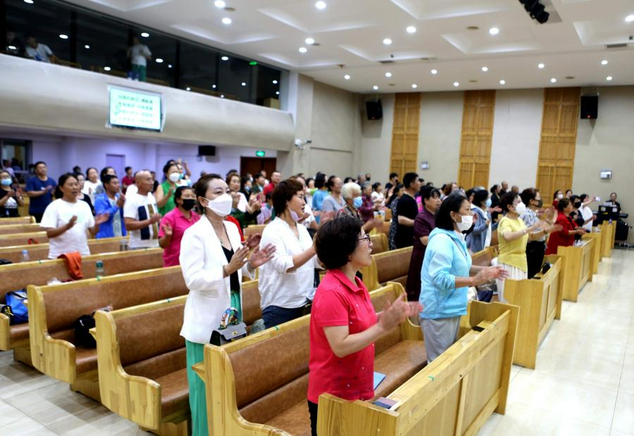 笔者参加了8月23日(礼拜二)的赞美会。赞美会的会场空前的热烈,几乎是座无虚席,弟兄姊妹们带着喜乐的笑容在晚上6点前就陆续到了主堂,开始了赞美。一位和我熟悉的姊妹告诉我,因为疫情的缘故,教会的赞美会停了,今年总算又盼来了赞美。大家心里可高兴了。一位参加赞美的年轻弟兄说:“信徒的生活要信仰化,信仰要生活化,二者相辅相成,我们来到圣殿赞美三一的神是敬拜的一部分,更是敬拜生活中十分重要的部分。我们的现实生活中确实充满了各样的艰难和疾病,求主帮助我们,让我们用赞美过得胜的生活。”