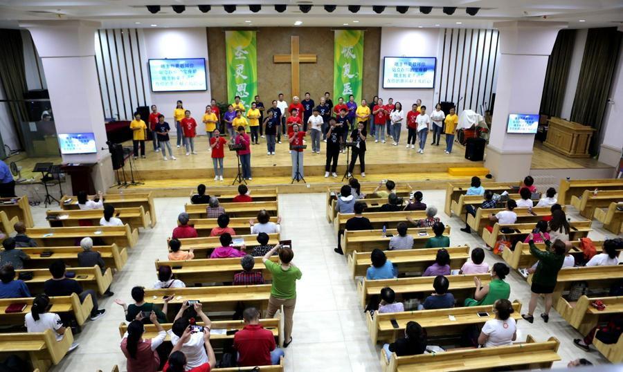 “你们要向耶和华唱新歌,全地都要向耶和华歌唱 .要向耶和华歌唱,称颂祂的名祂的名,天天传扬祂的救恩”。2022年8月23日晚,笔者刚来到位于在辽宁省鞍山市铁西区大西街的永乐基督教堂的圣殿外,就听到了主堂传来的高亢激扬、感心动耳的赞美之声。