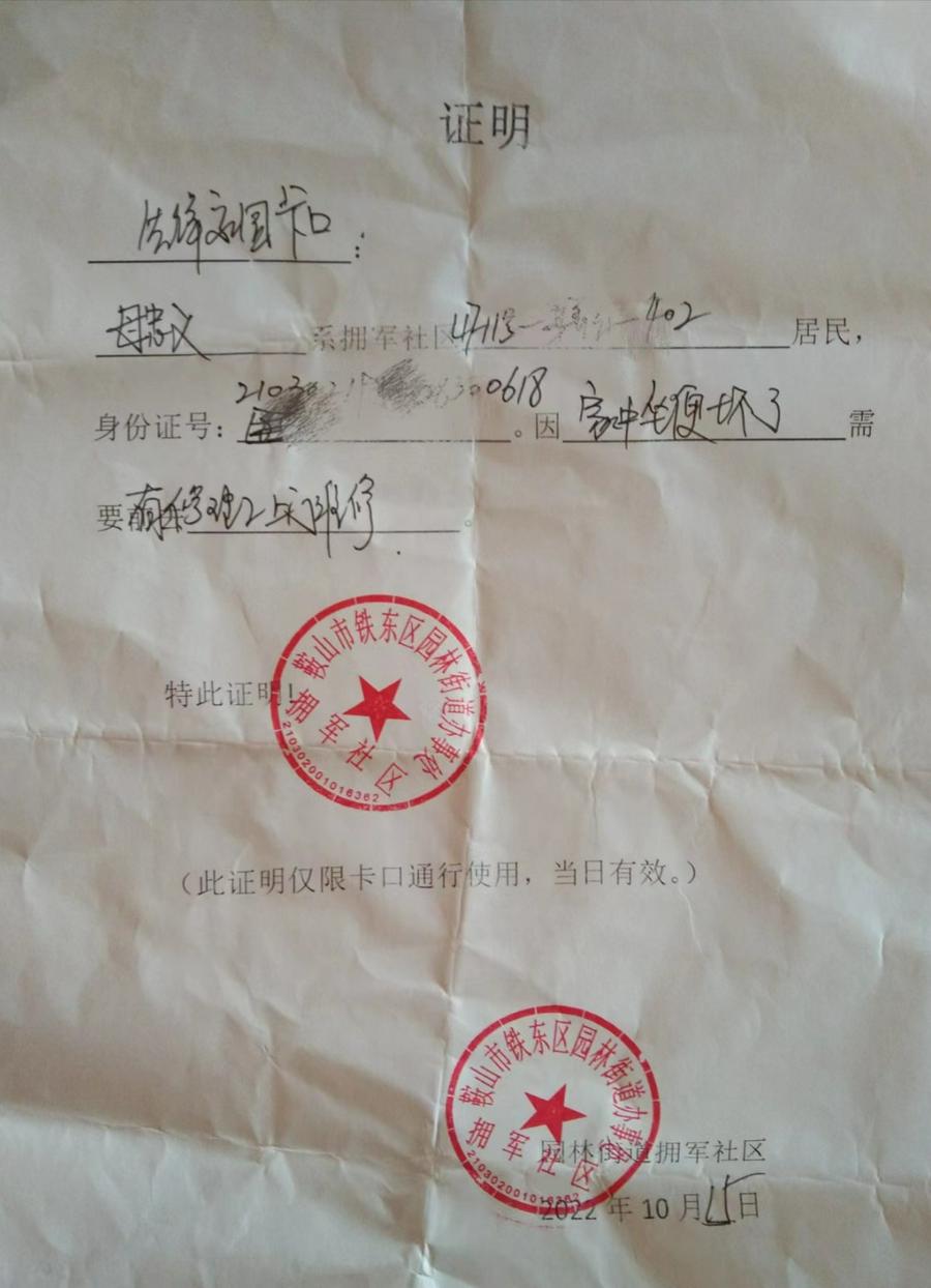 地砖铺好之后经过48小时的“养生”,再次遇到安装坐便和手盆的困难,也是因为全市静默,瓦匠师傅不能进来。再找“一把手”我也不好意思了,就和社区的网格长说明情况,也是没有想到,她给我开了一个证明(通行证)。这样瓦匠师傅从家里出来,连续跳了两个封闭的栅栏来到我的家里施工。
