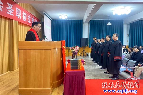 此次接受牧师圣职按立的同工有来自省基督教两会的贾海光(男)、张亚萍(女)、党爱侠(女)、李珊(女)和陕西圣经学校的付丽丽(女)、许优良(男),共六位。