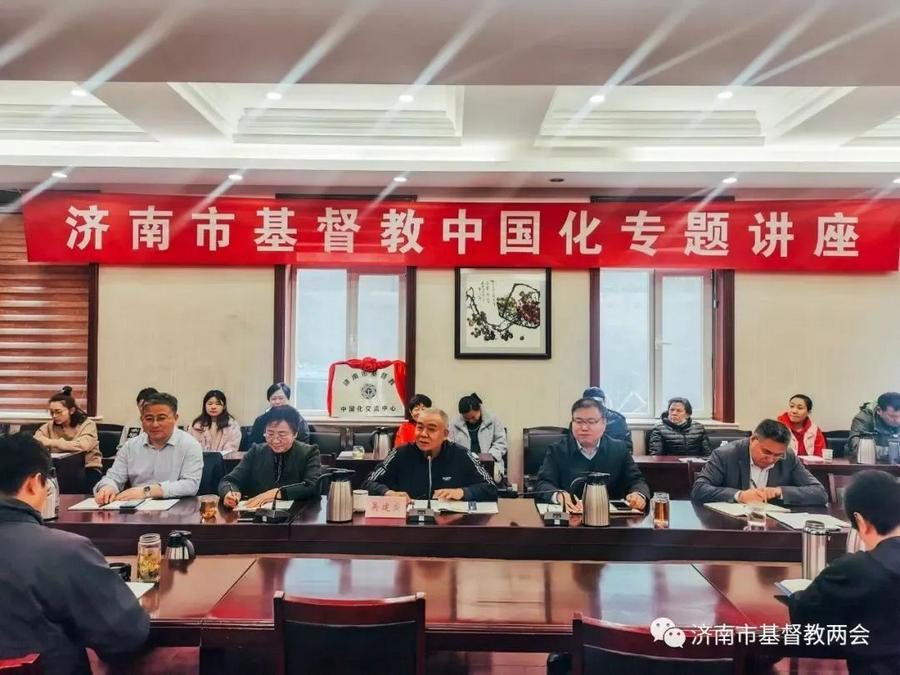 11月11日上午,山东省济南市基督教两会邀请省基督教两会副主任副会长吴建寅牧师,就基督教中国化问题进行专题讲座,市区内主要活动场所负责人、教职人员约40人参加讲座。