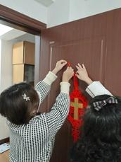 之后小组又送上弟兄姐妹奉献金2800元,来帮扶刘维长弟兄。最后小组还送上三件十字架绒毛挂饰,并帮助挂在门上。