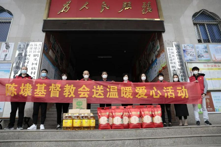 元月13日下午,福建省晋江市基督教陈埭堂送爱心活动在教堂所在地的邻村鹏头村委会举办。活动当日,该堂教牧长执同工冒雨把爱心捐献食品送到村委会,在寒冷的天气中送去了温暖。