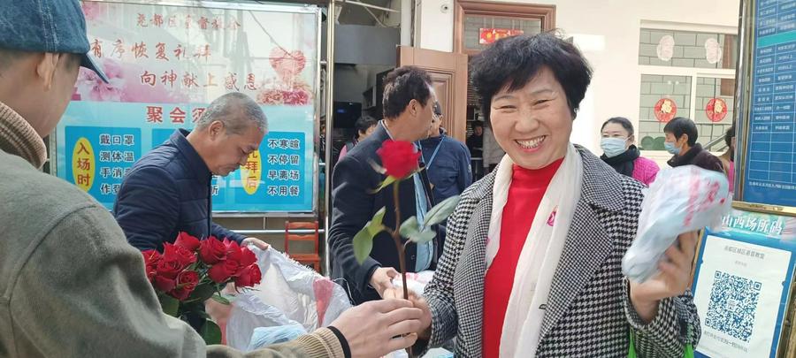 临别时,参加崇拜的姊妹还得到了一束玫瑰花和毛巾等温馨礼物。