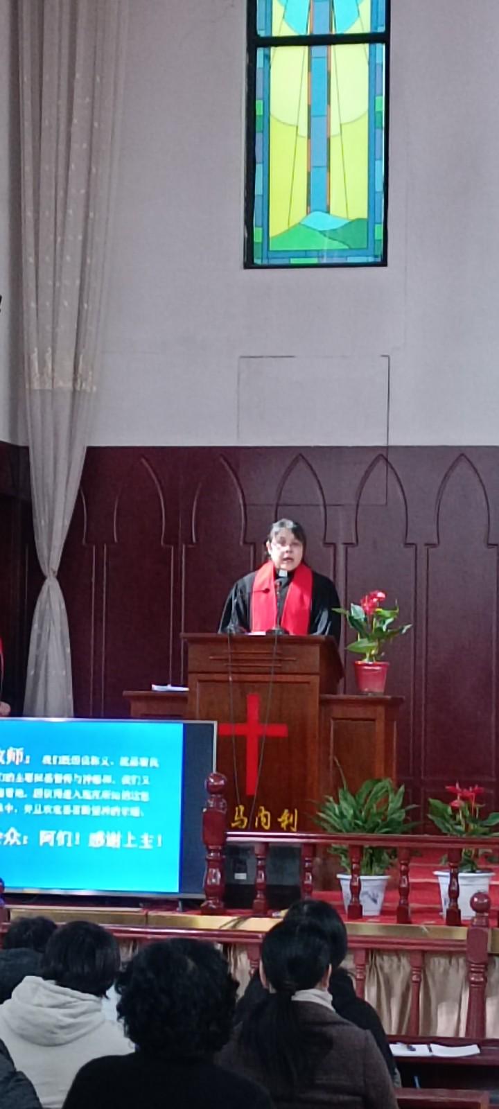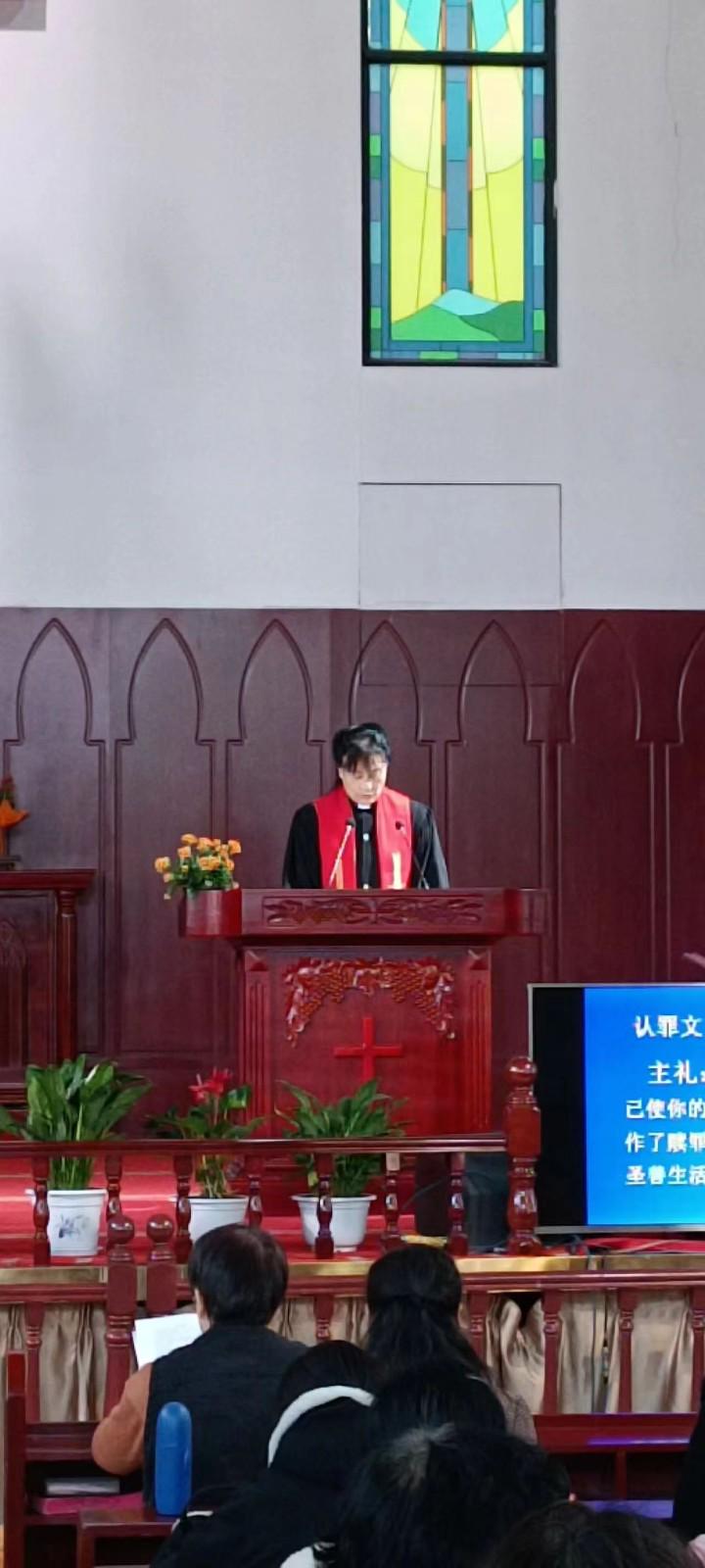 崇拜按照全国两会同意编写的崇拜程序内容逐一进行,诗班献唱《历代妇女多圣贤》诗歌。陈丽长老主礼认罪礼和赦罪礼。