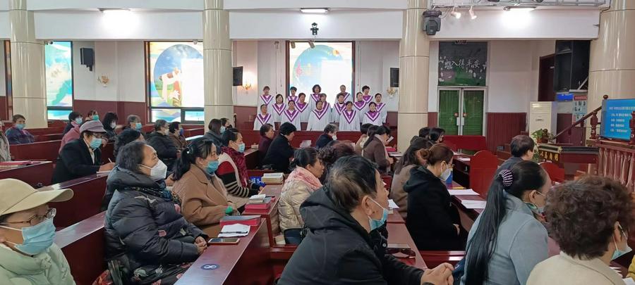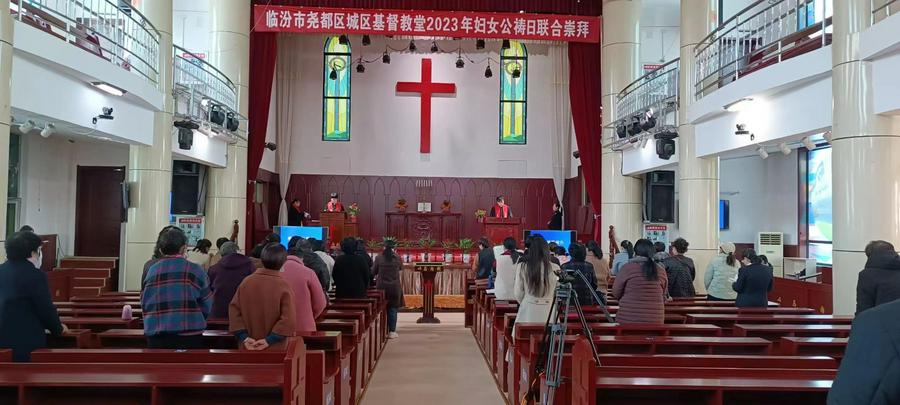 3月4日上午,整洁一新的山西省临汾市尧都区基督教城区堂庄严神圣,区基督教两会在这里举行2023年世界妇女公祷日主题联合崇拜,来自城区的近百名姊妹心怀虔敬参加。