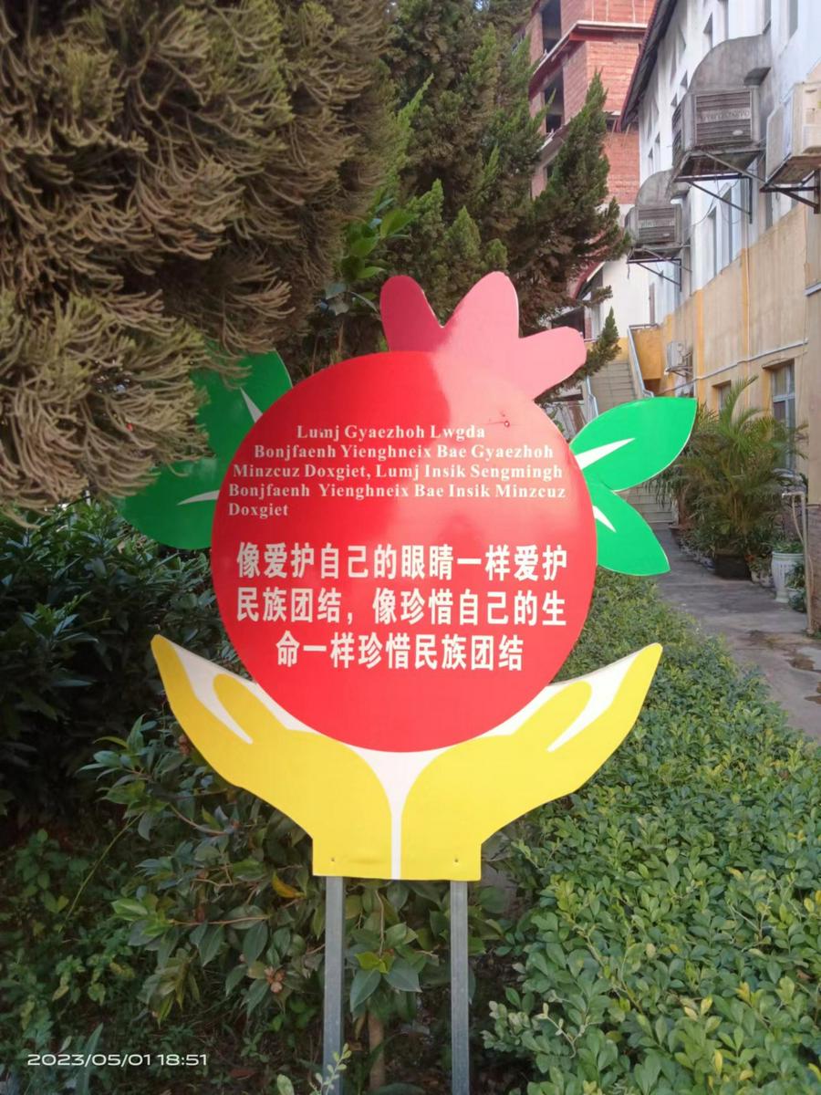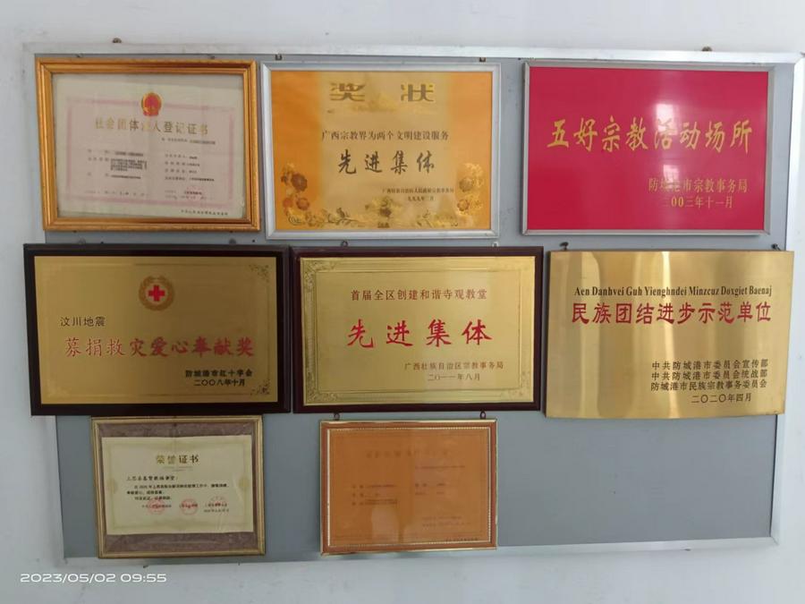 上思县是壮族聚集的地方,教会也是这样。他们注重教会的历史传承、注重民族大团结、促进和谐发展,在这方面做了有力的宣传。在教堂入口处有教会历史的介绍,最令人注目的就是“中华传统文化长廊”,将五十六个民族的传统文化,包括信仰做了言简意赅的图片和文字宣传。