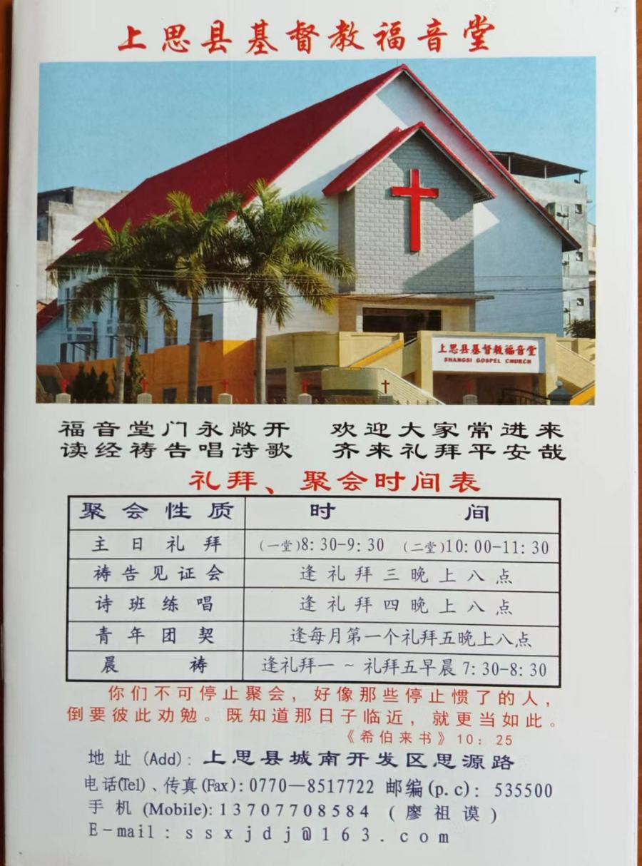 上思县基督教福音堂在文宣方面有五个特点: