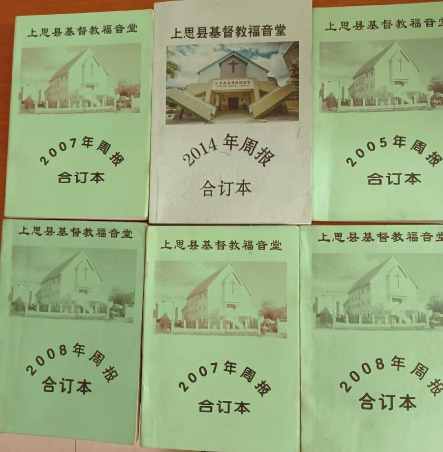 笔者在2020年年末来到这里的时候就看到了他们教会的文宣之一:《上思县基督教福音堂周报》单张和每一年度的《上思县基督教福音堂周报合订本》。这些对内的宣传品内容广泛,“接地气”,涉及经文、聚会时间、聚会内容、领会人、证道、接待、教堂地点、电话、联系人;主日礼拜程序、值班表、注意事项、家事报告、上个主日参加聚会的人数、奉献情况、赞美诗歌、图片等约十五、六个内容和栏目。《周报》信徒每周的聚会可以人手一册,而《合订本》则是每年的积累,形成了教会的文化和历史积累,是一件非常于有远见的事工。
