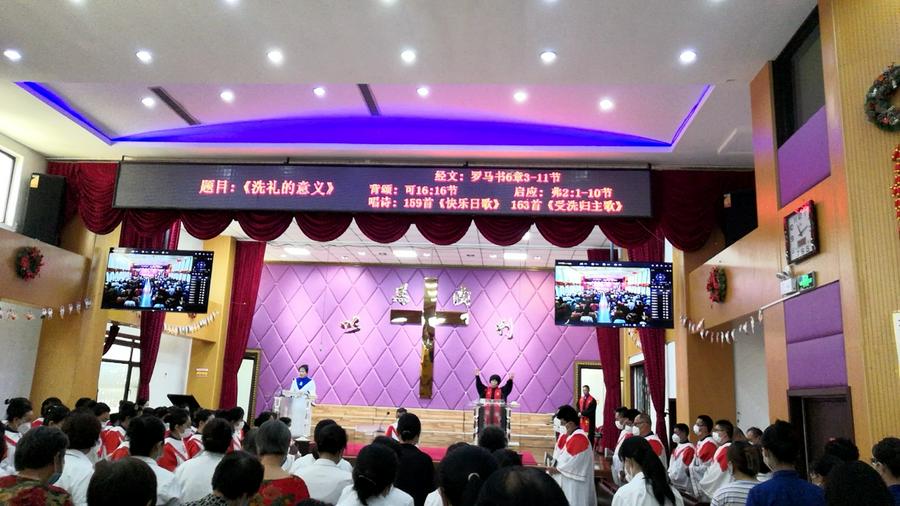 淄博张店区基督教神舟堂的圣洗礼拜和圣餐礼拜在三一的神看顾和祝福下,圆满结束。