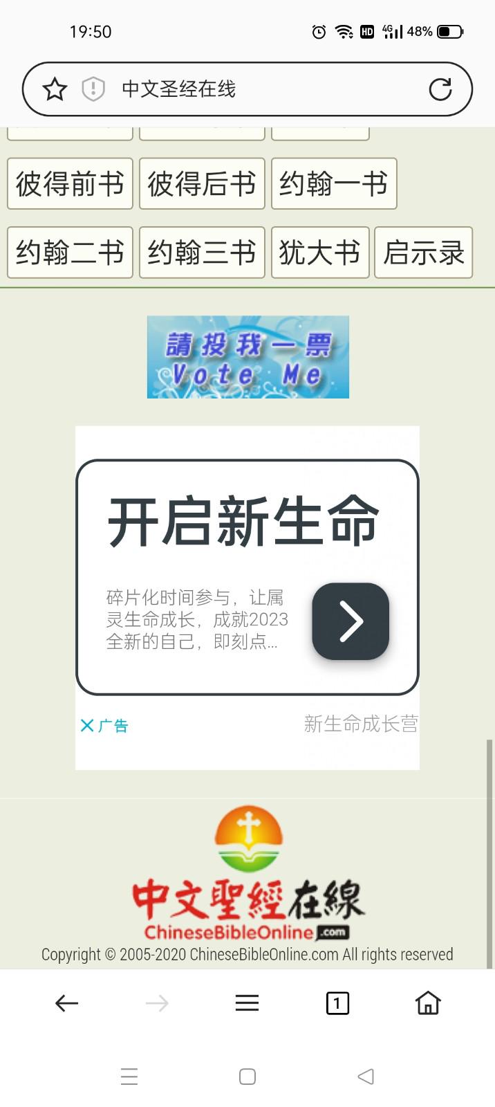 上个月某天我想在电脑上看圣经,搜索圣经排名第一的网站叫做“中文圣经在线”,当时不觉得有什么问题,等我看了一会之后忽然跳出来广告“主的精兵夏季训练营”,说带你免费学习圣经。
