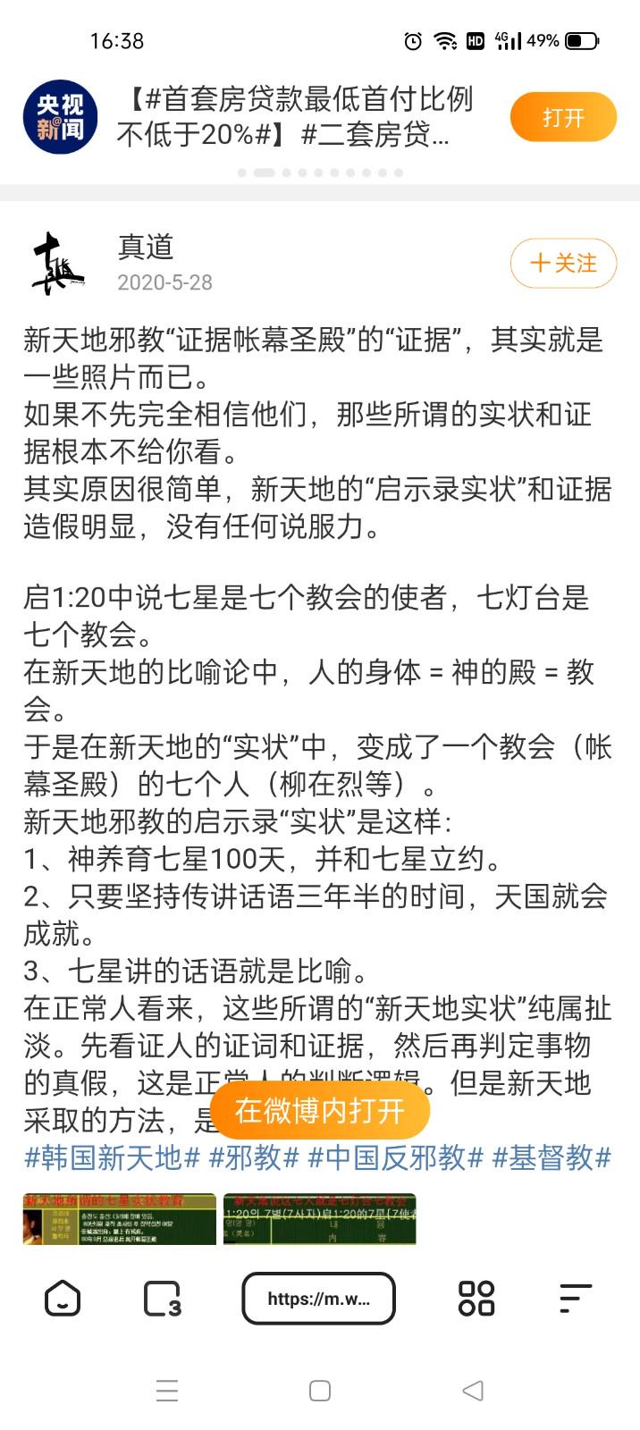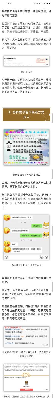 我真的很感谢神的保守,否则真不知道怎么样。在我老家这里,以前就有很多人崇拜华雪和,我妈在这方面反复强调过,所以我记得那些经文。耶稣说:“若有人对你们说基督在内屋中,基督在旷野里,你们不要信。”这时我知道肯定是邪教,我想起了我爸说的新天地,其实有点不敢相信真是新天地,网上一搜完全对上了。