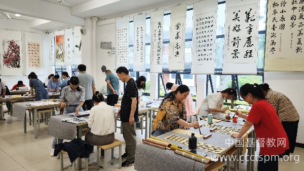 湖南圣经学校还精心布置了以“坚持基督教中国化方向”为主题的书画展厅,展示了70余幅书画作品,让学生沉浸式感受中华文化的博大精深。湖南省基督教协会会长、湖南圣经学校校长杜温武牧师以“勤学苦练传承中华书法,挥毫泼墨书写上帝恩典”为题勉励学生,并定期组织学校和湖南潇湘民族书画院进行书画交流。