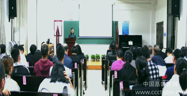 刘立长老引用《路加福音》1章38节,《罗马书》1章14至15节,以“情愿的服侍”为主题,与同学们分享神宝贵的话语及她自己在学习和服侍过程中的感悟,灵性逐渐成长的心路历程。她期盼每一位在校神学生在学习、生活和服侍中,不仅要学习马利亚的情愿、保罗的情愿,更要情愿与基督同在。