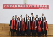 广东省基督教三自爱国会主席樊宏恩牧师、广东省基督教协会会长郭云牧师、 广东省基督教协会常务副会长雷玉明牧师、广东省基督教三自爱国会副主席、东莞市基督教三自爱国会主席卢翰衢牧师、东莞市基督教协会会长马雄华牧师组成按立圣职牧师团。来自东莞市基督教各堂点教牧、堂委和弟兄姊妹共约170人参加了本次典礼。