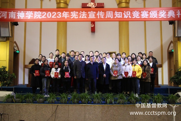 为进一步深入学习党的二十大精神,贯彻落实习近平法治思想,扎实开展2023年“宪法宣传周”活动,切实提升全省基督教界的法治素养,12月7日,河南神学院举办2023年宪法知识竞赛。省基督教三自爱国运动委员会主席、河南神学院院长唐卫民牧师出席活动并致辞。省基督教“两会”全体驻会教职人员、河南神学院全体师生等约300余人参加活动。
