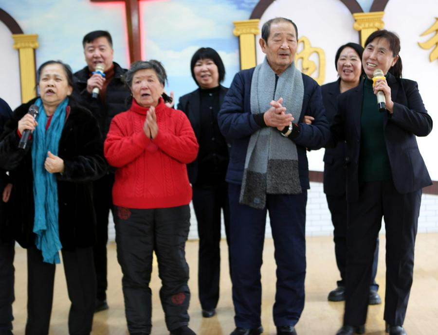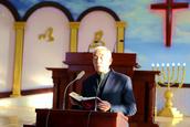 老虎屯教会的老传道人张玉胜弟兄主持今天的圣诞节崇拜。