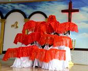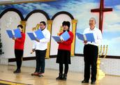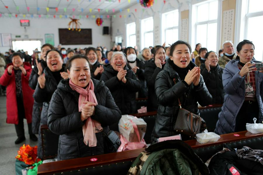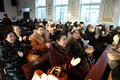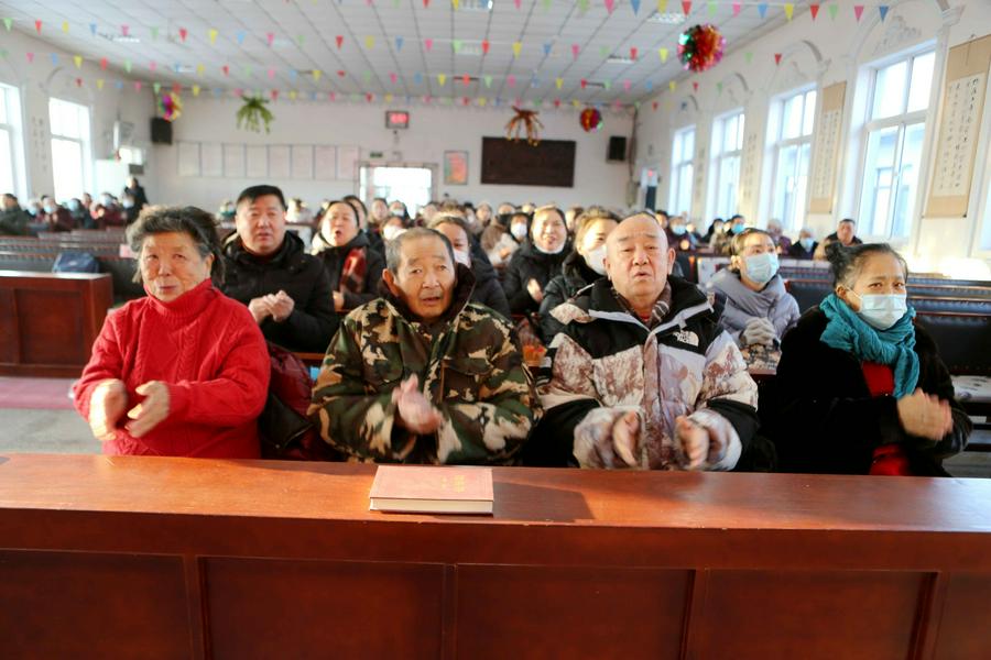 看哪,今天大喜的日子里嘉宾来临:鞍山市果子园教会的弟兄姊妹在负责人高峥牧师的带领下来了、大孤山教会的弟兄姊妹在负责人马连圣教士带领下来了、活龙寨教会的弟兄姊妹在负责人安桂玲教士的带领下来了;本堂的弟兄姊妹、父老乡亲从镇子的汤岗子街道、中所屯、明甲等村屯相约来到教堂,喜乐开怀、迎接圣诞到来。