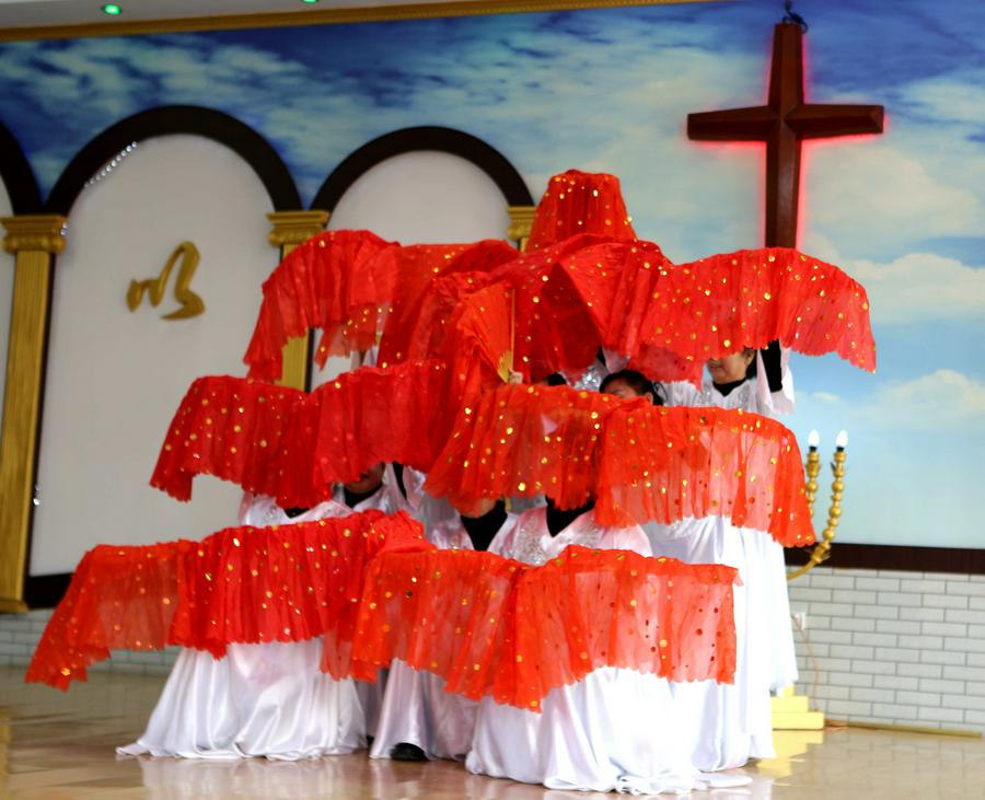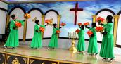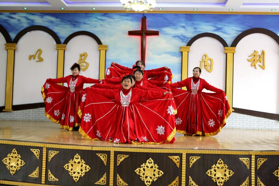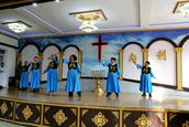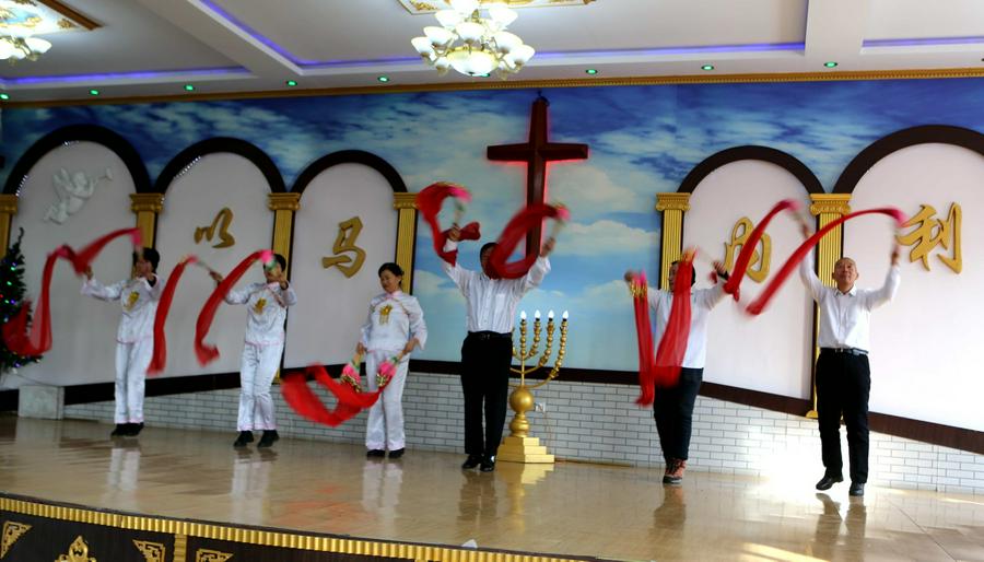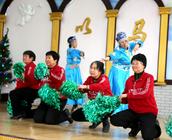 参加今天圣诞聚会的会众在圣殿主堂座无虚席,还有的在后边站着观看。《神爱酒满人间》、《伯利恒的夜晚》、《荒漠甘泉》、《唱吧跳吧》、《神的爱子来到世上》、 《抹大拉的马利亚》、《欢迎回家》、《爱在飞翔》、《喜迎圣诞》等诗歌和舞蹈一一上演,就如同当年“大卫和以色列众人在 神前用琴、瑟、锣、鼓、号作乐,极力跳舞歌唱”一样喜乐、感恩;诗班的诗朗诵《他是谁》感人肺腑;还有那84岁的夫妻合唱,一曲结束,会众再次邀请他们再献唱一首;参加赞美的老年姊妹,有的因为膝盖不太好,蹲着不行,就跪在圣台献祭,很令人感动;老虎屯教会五位执事在吴帅牧师的带领下登上圣台向主献上《欢乐圣诞佳音》和诗朗诵,全场会众击掌共同合唱。