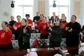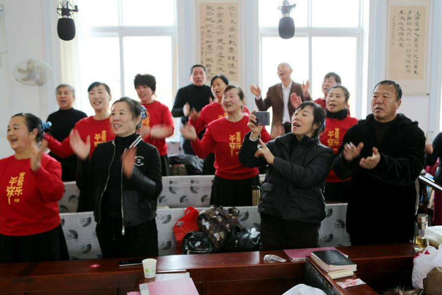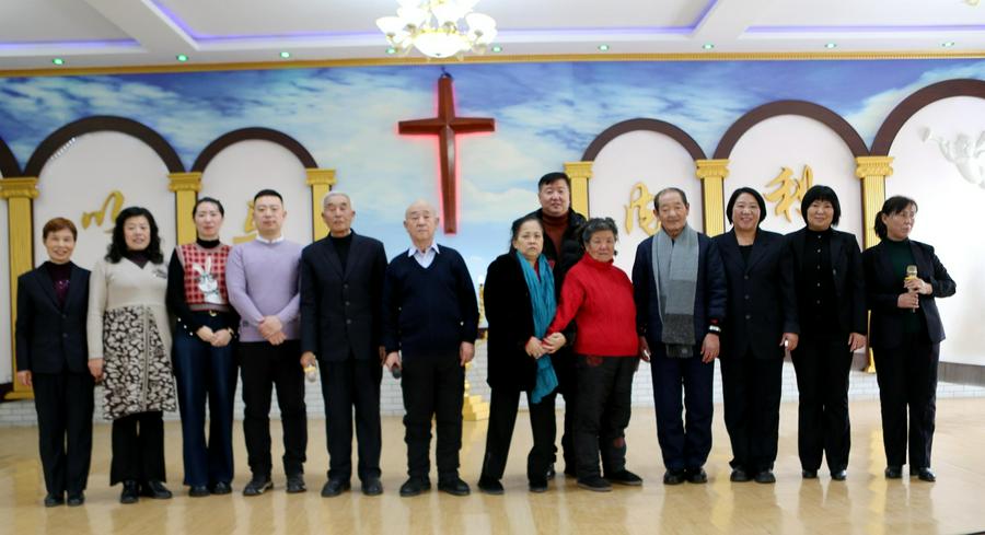 今天圣诞节赞美会的高潮令人难忘:鞍山市在教会复会起初的第一批老传道人、八十多岁的王福荣姊妹、王万程弟兄等与现在老虎屯教会、果子园教会、大孤山教会、活龙寨教会的年轻传道人同在圣台手拉手与全体弟兄姊妹高唱《同路人》。此时此刻,笔者相信圣殿里主耶稣基督就笑脸在圣徒中间、圣灵充满、恩典充满、喜乐充满,笔者怀着激动的心情按下快门,拍下这四十余年风雨同舟的两代传道人同框的珍贵纪念照。