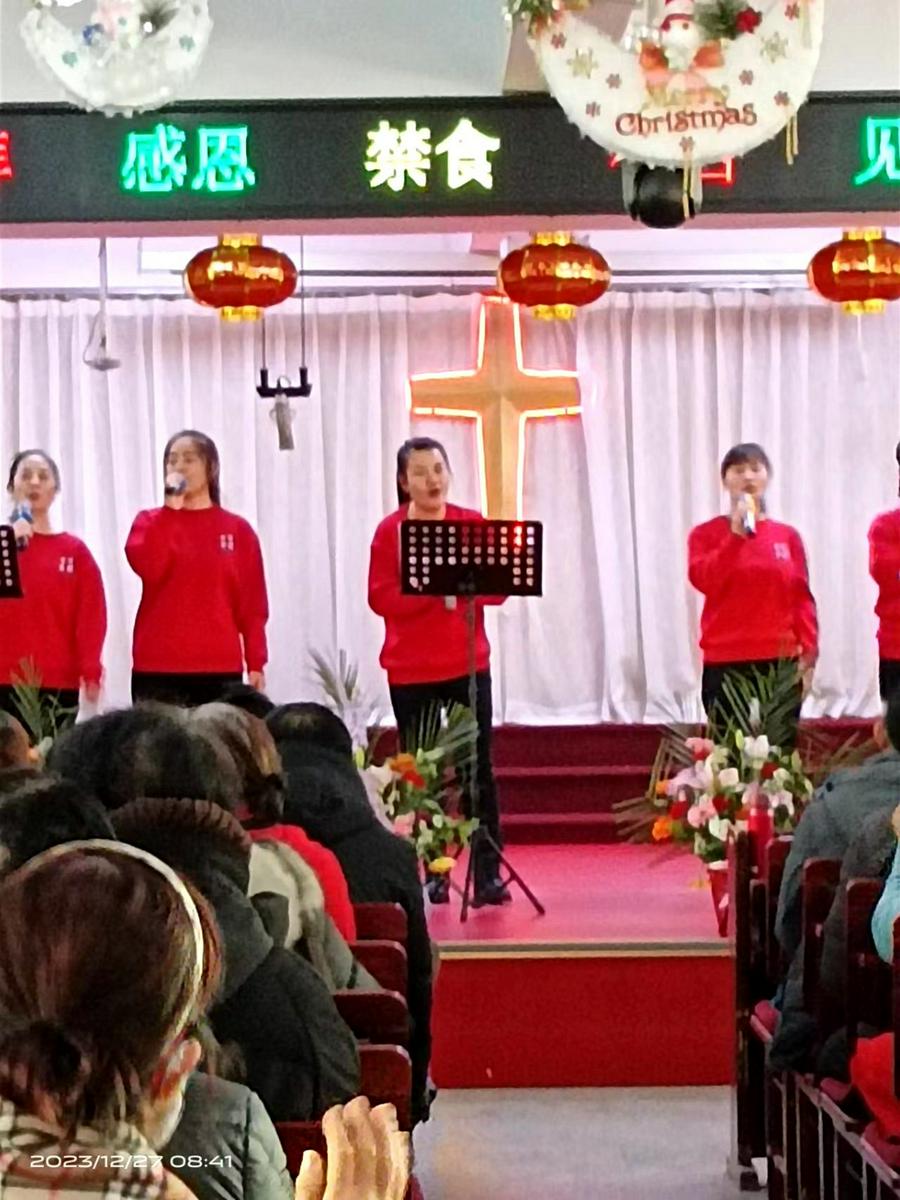 刚刚结束平安夜、圣诞节的火热聚会,绿化街教会的众肢体还沉浸在喜乐的恩典氛围中,今天,在月末和年末又迎来了赞美会。“用不住的赞美,用不住的感谢,将尊贵颂赞归给你天父。因你爱我无穷,因你爱我深广。我的主大能的膀臂将我来扶持,用测不透的爱永远爱我。我要一生跟随,我要一生献上。”圣乐响起,本堂孙月牧师带领七位身着火红色衣服的同工在圣台与会众一起开始了敬拜、祷告、赞美。