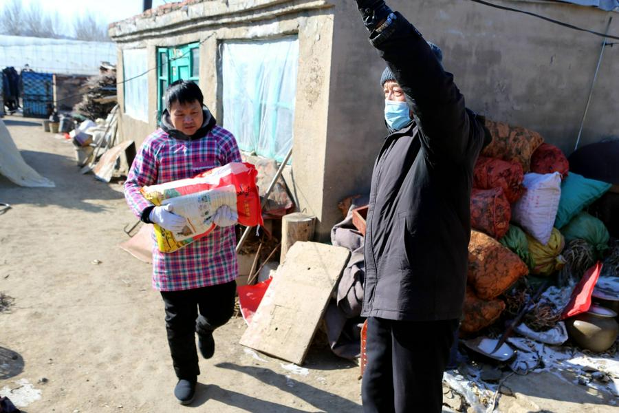 又是一天的奔波劳碌,晚上到一位老姊妹家,因为天冷,全家人都在被窝里躺着。到目前为止,盖州基督教三自爱国会的牧师和永生堂的执事们,又再次走访探望了19户。辛苦吗?真得辛苦!往信徒家里送米面油的弟兄最辛苦:想一想,两天的时间,每袋大米和白面都是50斤,39户,加在一起是多少斤?有的要往楼上扛,有的要走挺远,因为车进不去。一位扛白面的弟兄的手都疼了,要知道他们这些年轻人在家里可是父母的宝贝啊,哪里干过这么重的体力活呀!