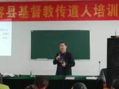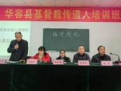 华容县民宗局法制法规室主任吴磊,湖南省基督教两会会长杜温武牧师,秘书长徐佳荣牧师,岳阳市基督教三自爱国运动委员会主席陈松梅牧师,省两会副总干事邓鹏牧师先后为本次培训班授课。县民宗局王永益局长亲临培训班看望、勉励学员,并同杜会长一起与学员合影留念。