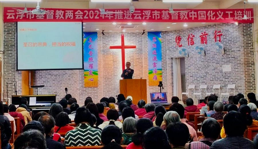 为进一步推进云浮市基督教中国化走深走实,提升各堂点的义工素质,推动教会事工有效开展,2024年3月9日云浮市基督教两会组织全体同工和部分义工在罗定基督教堂举办推进基督教中国化义工培训。此次培训特邀广东省基督两会牧者张成涛牧师、卢恩杰牧师和杨永纯牧师到会任培训讲员,共有来自全市七个堂点一百八十多位同工义工参加了培训。