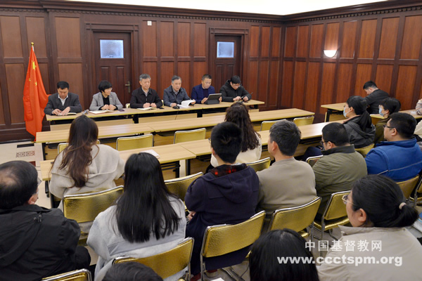 2024年3月15日下午,基督教全国两会召开全体同工会议,传达学习十四届全国人大二次会议及全国政协十四届二次会议精神。政协第十四届全国委员会常务委员、中国基督教三自爱国运动委员会主席徐晓鸿牧师,政协第十四届全国委员会常务委员、中国基督教协会会长吴巍牧师,十四届全国人大代表、中国基督教三自爱国运动委员会驻会副主席单渭祥牧师,中国基督教协会副会长兼总干事林曼红牧师、驻会副会长耿卫忠牧师出席会议。中国基督教三自爱国运动委员会秘书长顾梦飞同工主持会议。