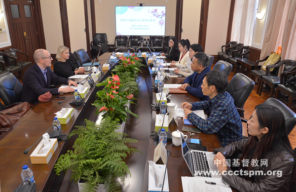 单渭祥牧师首先代表中国基督教两会对客人的到访表示诚挚欢迎,并向他们介绍了中国教会在变化的时代中所面临的机遇和挑战。单牧师特别指出,曾经的“洋教”形象和影响需要中国基督徒加倍努力去推进基督教中国化,坚持自治、自养、自传原则,使中国教会办得更好,让人们最后看到中国教会,既属于基督、也属于中国!单牧师还介绍了中国基督教两会的内部机构设置及其主要工作。