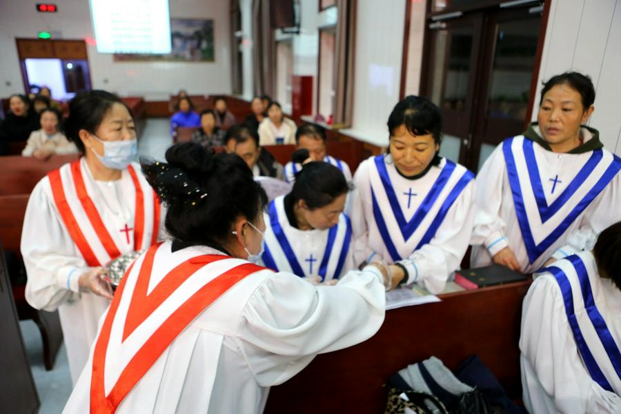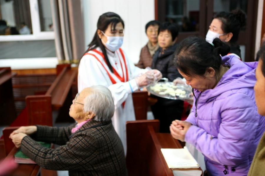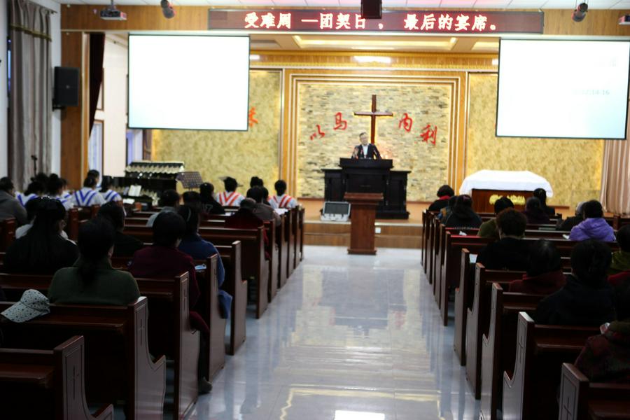 这一天的傍晚,在祖国东北辽宁省西北部的阜新市有着百余年历史的清河门区基督教会举行了团契日记念主耶稣基督在十字架上流宝血、舍命前夕的圣餐礼拜。