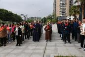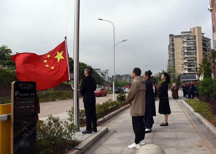 会议首先,与会全体人员举行了联合升国旗仪式,活动在庄严的国歌声中拉开帷幕,由佛教、道教、天主教、基督教四个宗教代表充当旗手,各执五星红旗一角,在《歌唱祖国》的歌声中,齐步至旗杆下。鲜艳的五星红旗在城南基督教堂门口冉冉升起,全体人员迎着国旗行注目礼,此次活动旨在进一步增强广大宗教人士的爱国爱教意识,推动宗教活动场所“四进”活动深入开展,进一步加强培育和践行社会主义核心价值观和强化爱国主义教育。