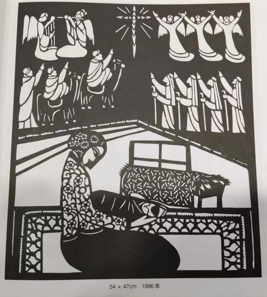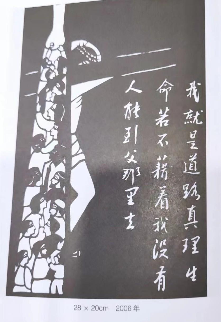 除了正在创作的《启示录》系列作品,范老师之前还创作过《以赛亚书》《诗篇》《使徒行传》等《圣经》中整卷书籍的系列剪纸作品,其中,《使徒行传》共有84幅作品,《诗篇》系列将近200幅作品。范老师不仅以成卷的圣经内容为创作主题,她还以“圣诞”“耶稣生平与教训”“苦路”等主题进行创作,其中《耶稣生平与教训》系列共有153幅作品。另外,她还有跟据单个的圣经故事、圣经经文的作品。