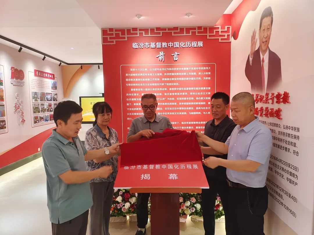 为贯彻落实全国宗教工作会议精神所强调的坚持宗教中国化方向,以及《深入推进我国基督教中国化五年工作规划纲要(2023—2027)》的要求,在新时代新征程继续推进我国基督教中国化走深走实,不断提高基督教与社会主义社会相适应的水平,展示基督教的“临汾实践”和探索,经过数月筹备,7月9日,山西省临汾市基督教中国化展厅举行了揭幕仪式。临汾市委统战部副部长李刚、副部长、民宗局局长郭琰、市委统战部四科科长史京等出席仪式。