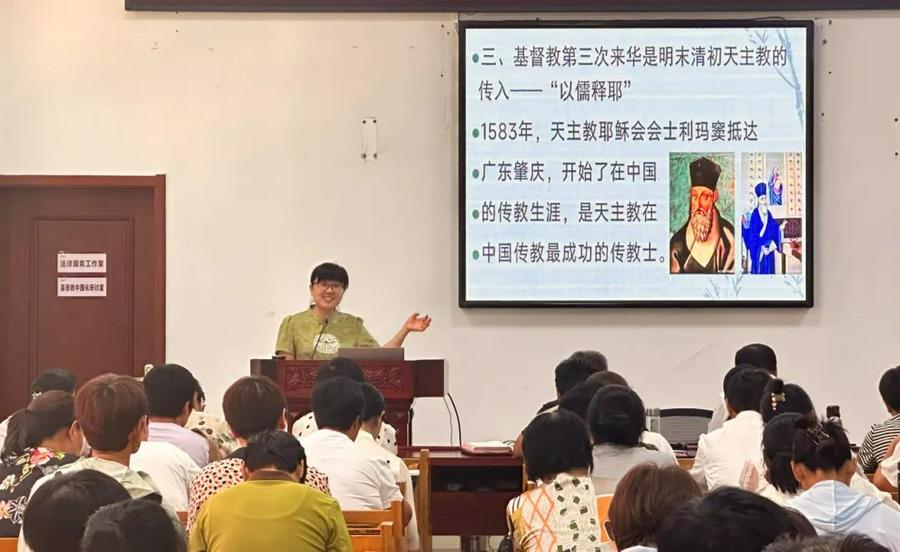 县三自常委、副秘书长高凤霞教师为大家主讲《基督教中国化讲座》,以基督教文化定位的历史背景、历史原因作为切入点,透过“勿忘过去——基督教中国化的必要性、正视现状——基督教中国化的重要性、面向未来——基督教中国化的建设性”三个视角,对基督教“中国化”的路向进行解析。