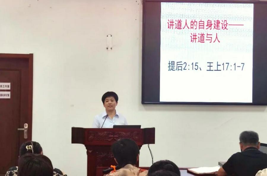 县三自副主任兼秘书长刘春珍教师紧紧围绕“基督教与中国传统文化和风俗礼仪、教会规章制度建设与依法从严治教、基督教与社会服务、民主办教”四个主题讲解《怎样写讲章》。课堂上讲授7篇讲章范例,手把手教给大家如何把基督教中国化融入到准备讲章、讲经讲道过程中,传讲适应时代进步和社会发展要求的信息,讲出与社会主义核心价值观相契合、相融通的内容,不断加强自身建设,丰富教会文化内涵,提升广大信徒的灵性生命,以高度的文化自信,热心参与教会服侍。